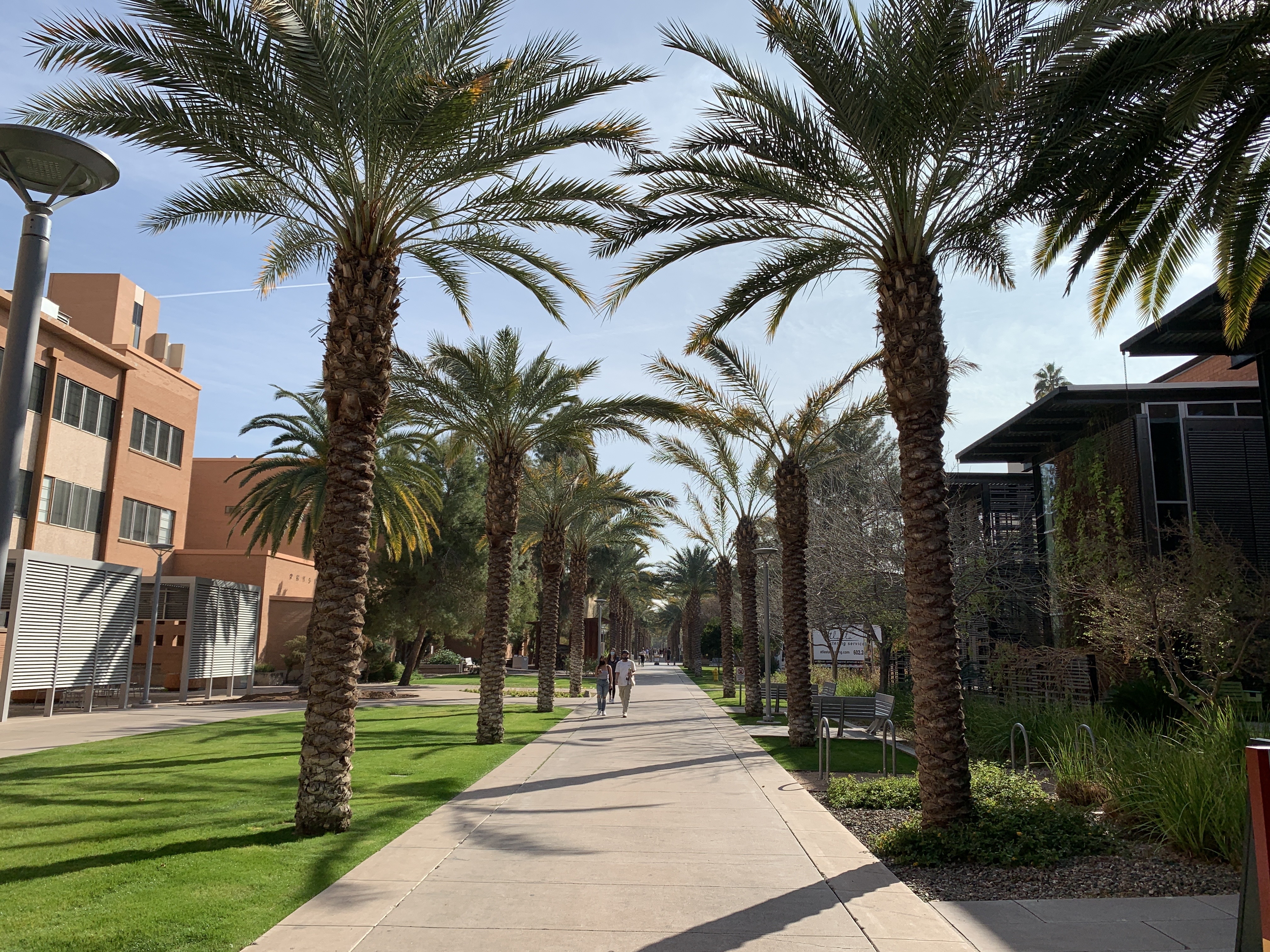 What species of palm trees currently lines the Palm Walk on ASU's Tempe campus?